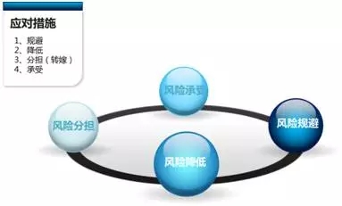 (4)风险承受:不采取控制措施降低风险或者减轻损失,对于风险承受度之内的,或为了实现战略目标而不可摆脱的固有的、稳定的风险,可选择做好准备,调集资金和其他资源正面应对。