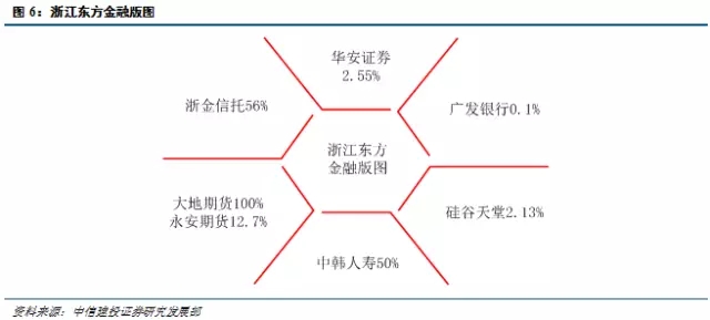 浙江东方以出口贸易起家,后主营业务加入“房地产开发经营”,实行双轮驱动。随着我国经济下滑,公司调整战略,自2011年起便在外围对期货、证券、PE等金融机构进行参股投资,后于2015年10月停牌重组,发行股份向国贸集团购买其持有的浙商资产100%股权,浙金信托56%股权、大地期货87%股权及中韩人寿50%股权,向中大投资购买其持有的大地期货13%股权,同时配套融资62.25亿元,35亿向浙商资管增资,27.25亿补流。