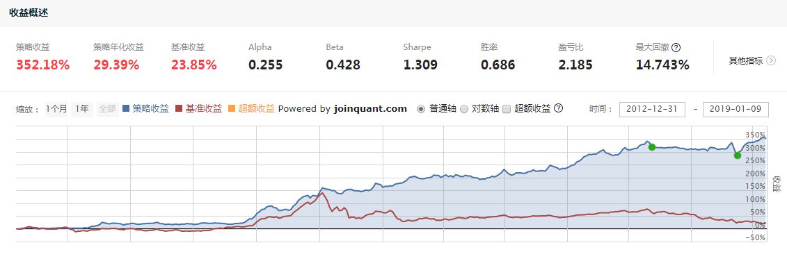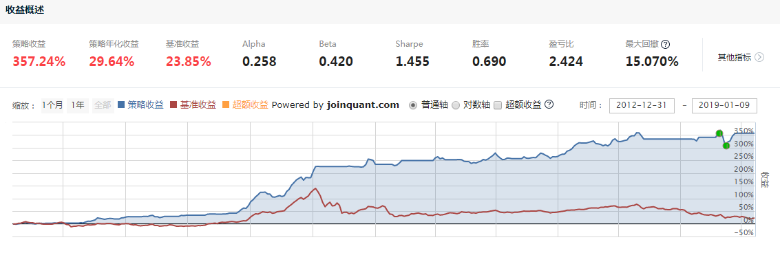 选股逻辑是使用PB_ROE指标,试图选择到ROE较高,且PB较低的股票,该因子是众多基本面因子中较为简单有效的,也是有足够经济学意义支撑的。