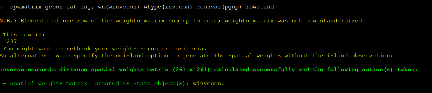 求助!关于stata中spwmatrix生成地理距离空间权重矩阵问题