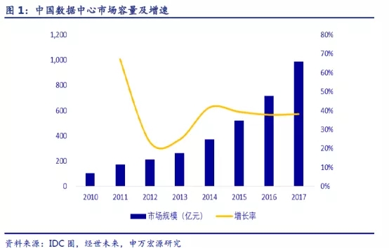 根据中国IDC圈统计数据显示,截至2017年底,全球数据中心市场规模达到534.7亿美元,同比增长18.3%;2018一季度,环比增幅超过20%。