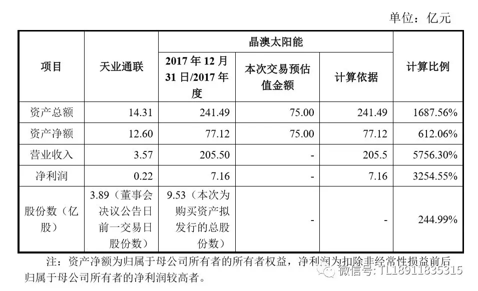 晶澳太阳能截至 2017 年 12 月 31 日未经审计的资产总额、资产净额,2017年度营业收入、净利润占上市公司同期经审计的合并财务报表相关指标,以及上市公司为购买资产发行的股份占上市公司本次交易首次董事会决议公告日前一个交易日股份的比例如下:
