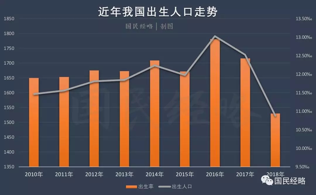 到了2018年,人口形势继续下行。当年出生人口仅仅1523万人,比2016年少了263万人,与预期的2188万人,更是少了足足665万人。