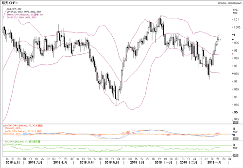 根据最新的消息,欧盟方面认为英国最新出笼的脱欧B计划与之前的协议豪无新意。因此英国能否与欧盟顺利达成协议性脱欧,还是个未知数。一旦出现英国无协议退欧可能,那么在外汇市场上瑞郎则只能被动地继续担当避险货币的角色。开年以来,由于美元指数重获升势,瑞郎出现较大幅度的下跌。若从日线图上观察,目前美元兑瑞郎在1这个整数关口前似乎遇阻力不小,技术指标也出现超买迹象。操作上,在现价0.9980附近尝试空头美元,赢利目标先看0.99,止损摆在1.0030之上。