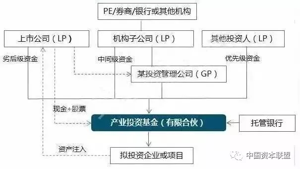 1.基金结构:上市公司出资作为基金的劣后级,投资机构出资作为夹层(或中间级),并由投资机构负责募集优先级资金。