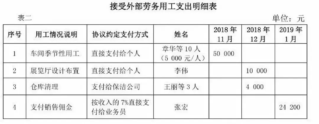 X 公司是一家生产企业,为增值税一般纳税人。根据生产季节性变化,生产旺季时会从劳务公司招聘临时人员满足生产用工需求。按照公司工资结算制度,每月工资于次月10 日发放。2018 年和2019 年工资分配情况、接受外部人员提供劳务实际支付的报酬情况如下表一、表二所示(保洁公司提供增值税专用发票,李伟未提供发票, 张宏提供增值税普通发票)。假设个人按照当月工资的11% 缴纳养老保险、失业保险,其他的保险费用和住房公积金忽略不计。因资金短缺,2018 年12 月销售人员的工资未按时支付,实际支付时间分别是2019 年2 月(支付51 600 元)和6 月(支付34 400 元)。