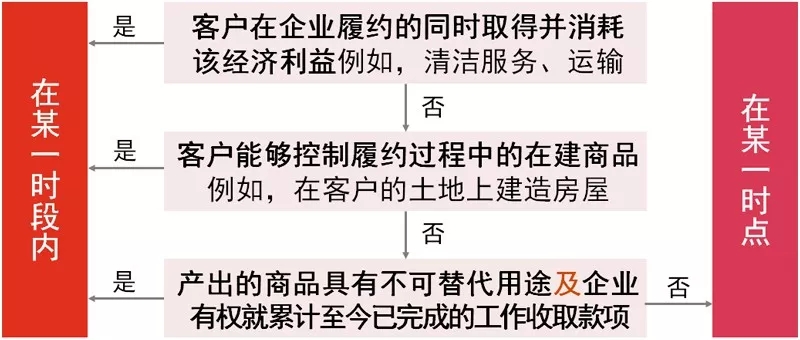 财政部于2017年7月5日修订发布了《企业会计准则第14号——收入》(以下简称“新收入准则”),该准则改革了现有的收入确认模型,突出强调了主体确认收入的方式应当反映其向客户转让商品或服务的模式,确认金额应当反映主体因交付该商品或服务而预期有权获得的金额,并设定了统一的收入确认计量的五步法模型。企业应当在履行了合同中的履约义务即客户取得相关商品控制权时确认收入。企业将商品的控制权转移给客户,该转移可能在某一时段内发生,也可能在某一时点发生。企业应当根据实际情况,首先应当按照新收入准则第十一条判断履约义务是否满足在某一时段内履行的条件,如不满足,则该履约义务属于在某一时点履行的履约义务。根据新收入准则及其讲解,满足下列条件之一的,属于在某一时段内履行履约义务,相关收入应当在该履约义务履行的期间内确认: