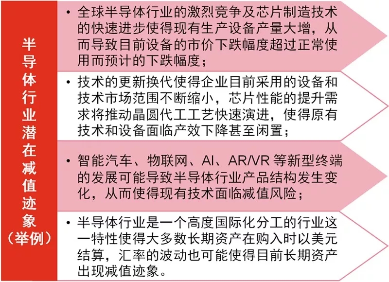 《企业会计准则第8号——资产减值》(以下简称“《资产减值》会计准则”)要求企业在资产负债表日判断资产是否存在减值迹象。在半导体行业,长期资产可能存在的减值迹象举例如下: