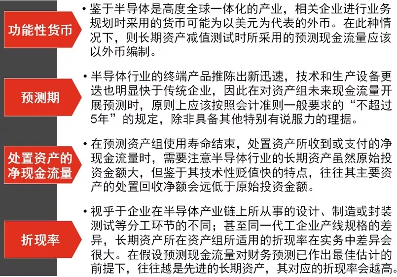 在对半导体企业需要开展长期资产减值测试的资产组的预计未来现金流量进行测算时需要特别关注以下方面: