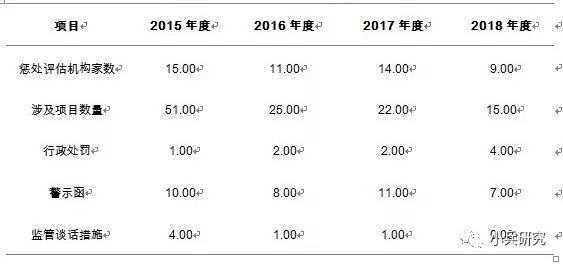 2015年至2018年,证监会系统下发70个资产评估机构惩处文件,涉及资产评估机构31家、涉及 113个评估项目。