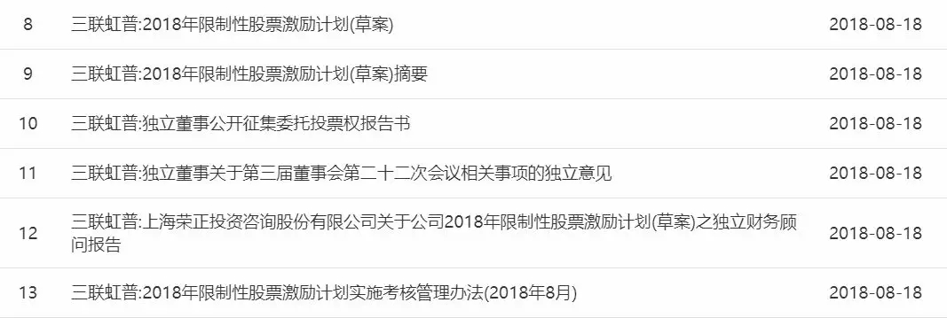 2018年9月3日,三联虹普公告完成回购,同日公告股东大会决议审议通过股权激励方案并召开董事会授予。这说明他们家对于总体节奏的把控是非常的紧凑和严谨的。