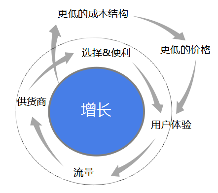 亚马逊有一个非常有名的“飞轮理论”,贝佐斯用一张图诠释了亚马逊的运营逻辑,公司所有活动都是围绕这个逻辑展开。