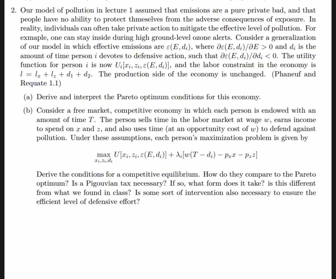 【环境经济学】研究生习题求解
