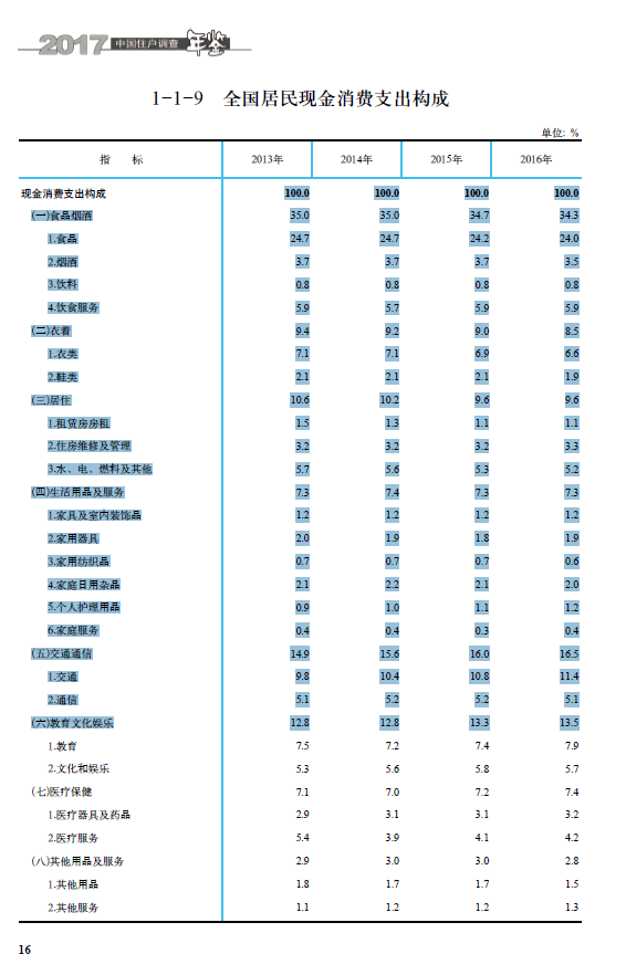 《中国住户调查年鉴-2017》中国居民收支数据(新口径)(国家统计局为12年及以前)