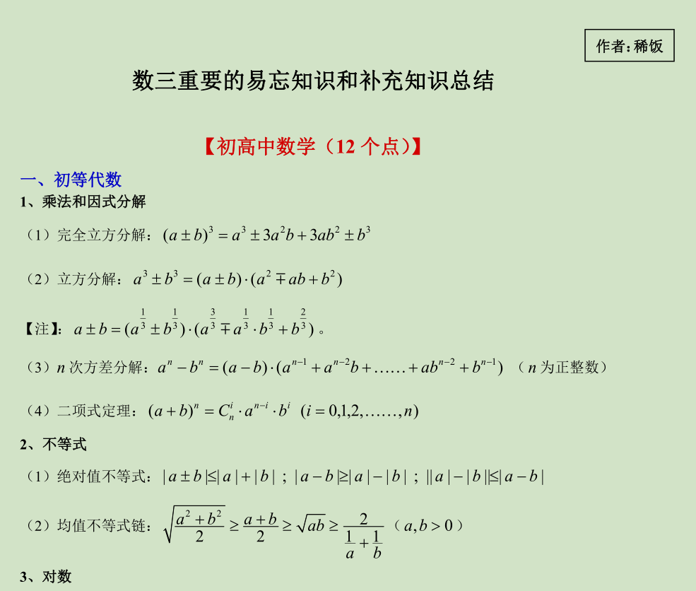 RT。2018年考研数三124分(那年巨难,不懂的可以查一下),这是当年复习过程中所做的一份数学原创笔记,总结了各类考试的易错点和补充知识。内容全部是自己手打总结的,现在提供给大家,收取一些整理的辛苦费