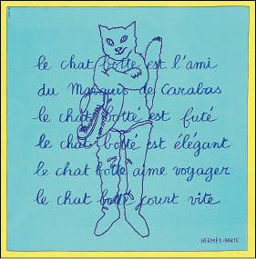 以童话「穿靴子的猫」绘制的口袋方巾,