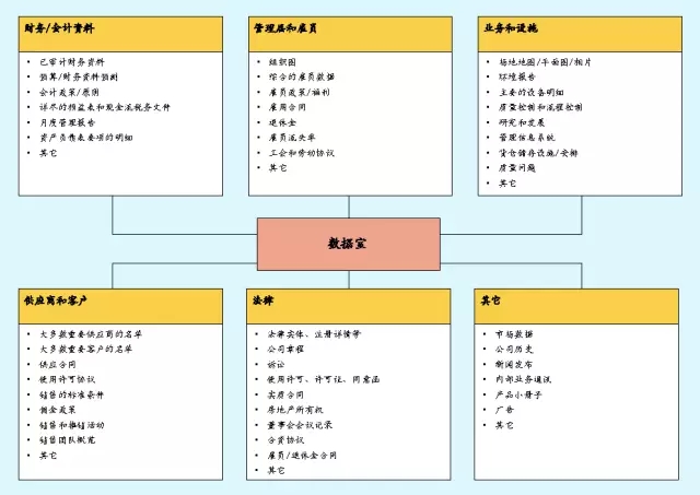 数据室包括按目录收集和分类的编汇材料;在参观数据室之后, 潜在投资方一般会问一些进一步跟进的问题。