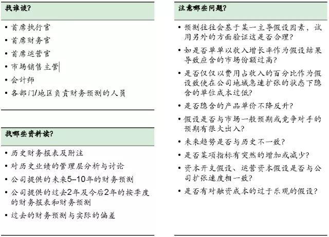 理解公司财务预测的基础假设,确保公司的作为估值基础的预测的合理性和在近期和远期的可实现性。
