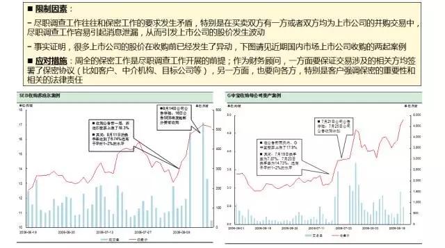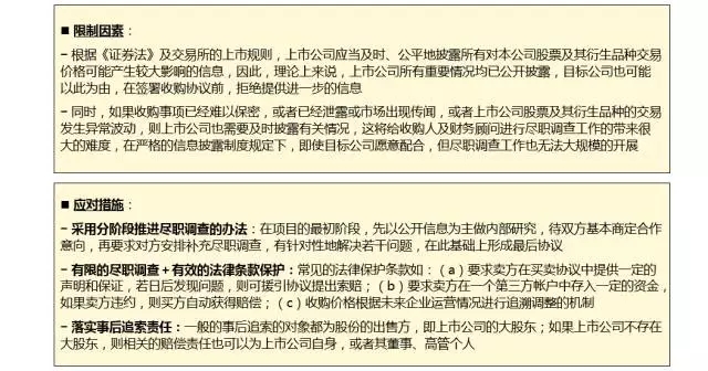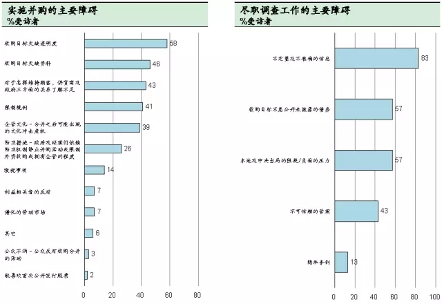 《经济学人信息部》近期的一项对中国并购近况的调查显示目标企业缺乏透明度以及缺少目标企业的相关信息是实施并购的主要障碍;而尽职调查工作方面存在的主要的障碍在于信息不完整不准确及收购目标未披露债务实际情况;调查显示外国企业更多地依靠对目标企业开展尽职调查工作来发现其存在的不足和问题,这也正是它们如此重视并购进程中这一环节的原因,而中国企业的管理人士则把资产估值资料不准确甚至是存在水分视为普遍存在,对比他们并不感到意外,也不会在尽职调查方面花太多时间;事实上,提高透明度,尽可能提供完备的资料是降低双方交易成本,提升交易成功机率的最有效的方法。缩小在尽职调查上的东西方文化差异有别于进一步促进跨国并购活动的蓬勃发展。