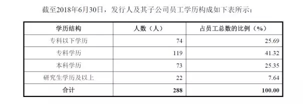 公司员工构成如下表所示,很难想象一个以高科技立身的企业的主要员工的学历是本科以下。