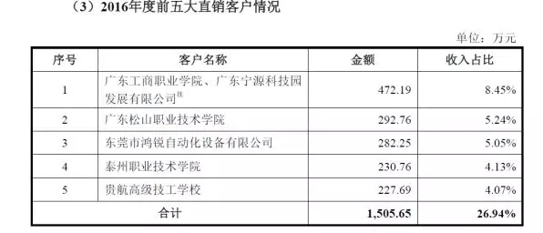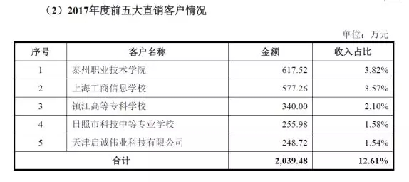 报告期内,公司各期前五大直销客户情况如下:前五大直销客户主要与职业教育相关,但是问题来了,全国教机器人的职业院校的数量是有限的,都卖过一遍之后,软件卖给谁?持续盈利能力如何保证?