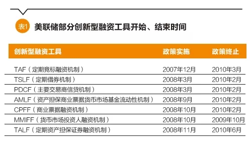 在次贷危机发生的两年后,即2010年末以前,美联储创新型流动融资机制陆续按照原先计划终止(如表1所示)。但此时,由于大额资产购买,美联储资产规模依然庞大。后期,美联储通过提高准备金付息利率、正回购、出售定期存款和出售持有的有价证券的常规货币政策操作,逐步缩表。