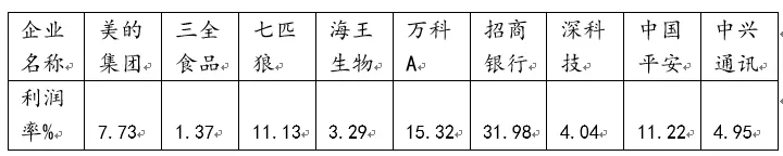 这两条标准简单,可操作性很强。对于第一条来说,你可以寻着踪迹去找,什么样的行业利润水平高,以一般人的认知能力大概已经有了一些答案,比如金融、地产、互联网。如果没有什么概念,或是想要去论证自己的感知的话,可以通过数据来验证。我简单列举不同行业代表公司的销售净利率(2017年年报数据),大家看了后就一目了然了。