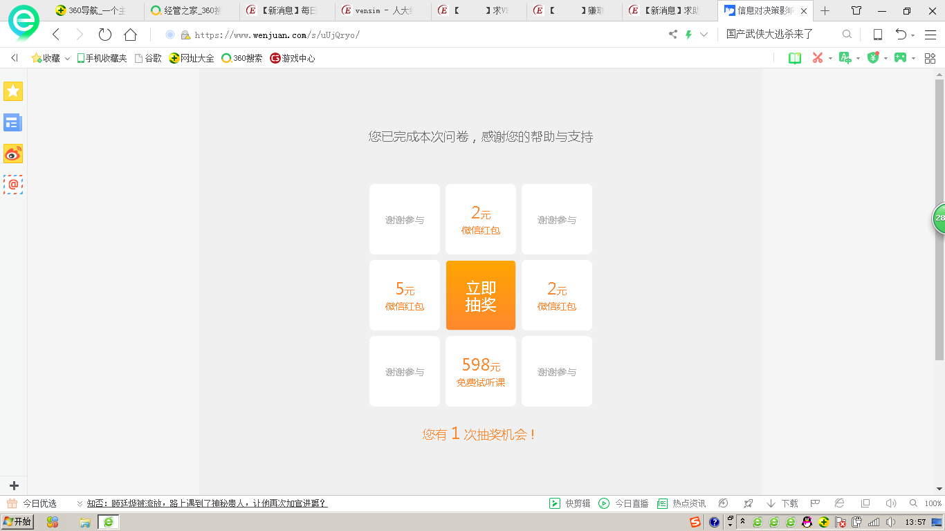 futafox 发表于 2019-2-11 11:16 已完成问卷,祝楼主顺利,因为截图的时候没注意直接点了上传然后就截不到带ID的页面了就直接截了完成后的图