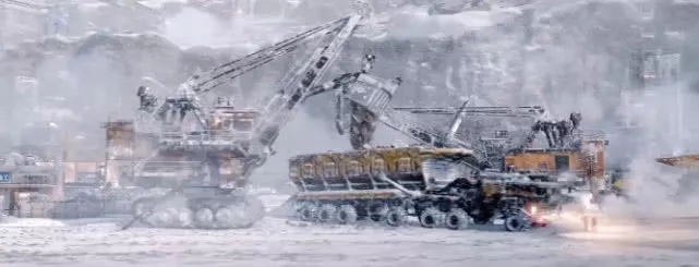 △ 图注:给聚变行星发动机提供燃料的巨大矿山车辆。石头的组成元素非常复杂,但主要是氧、硅、铝和钙等等这些原子序数较大的元素。这些元素能聚变吗?能!但实际上,难度恐怕高级外星人也做不到吧。