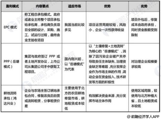 土壤修复对于技术和资金要求都比较高,目前的商业模式主要有三种。