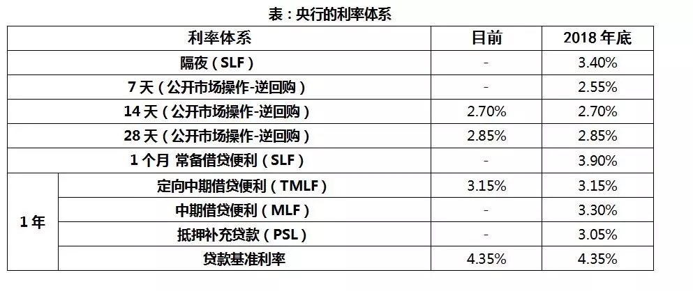 目前中国的融资结构,无论是在融资存量方面,还是融资增量方面,人民币信贷融资依然是主要部分。截至2018年末,社会融资存量中仍有67%是人民币信贷,而由于严监管下的去杠杆,过去三年的增量融资中人民币信贷融资比重还呈现了快速上升态势,2018年末已升至81%。而至今,虽然我国的利率市场化进程已进入不断完善阶段,央行也相继取消了存贷款利率的上下限,但央行掌控的存贷款基准利率仍起着重要作用。因此,如果不考虑其他限制因素的话,单纯出于降低微观主体融资成本的考虑,央行完全可以降低贷款基准利率。