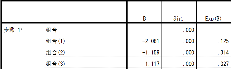 我知道这个结果可以说明,相对于组合4来说,组合123对于因变量都是有负的影响