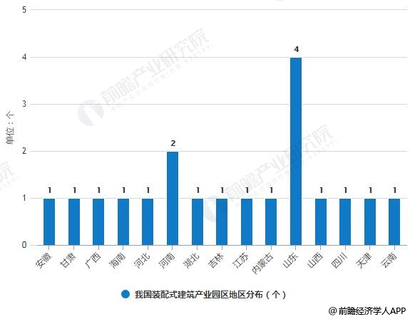 在政策的策动下,我国装配式建筑产业园区建设也如火如荼的展开。据前瞻产业研究院发布的《中国装配式建筑行业战略规划和企业战略咨询报告》统计数据显示,截至到2018年底,我国已经开始筹建以及开始运营的装配式建筑产业园区合计19个,其中建设最多的是山东,合计4个,分别为山东淄博装配式建筑产业园、山东济宁卓达模块化建筑产业园、山东德州德建装配式建筑产业园、山东日照国丰远大装配式建筑产业园;其次是河南,截至目前共建有河南华中宝钢装配式建筑产业园和新郑市中原装配式建筑产业园;其余建有装配式建筑产业园的地区共计13个。