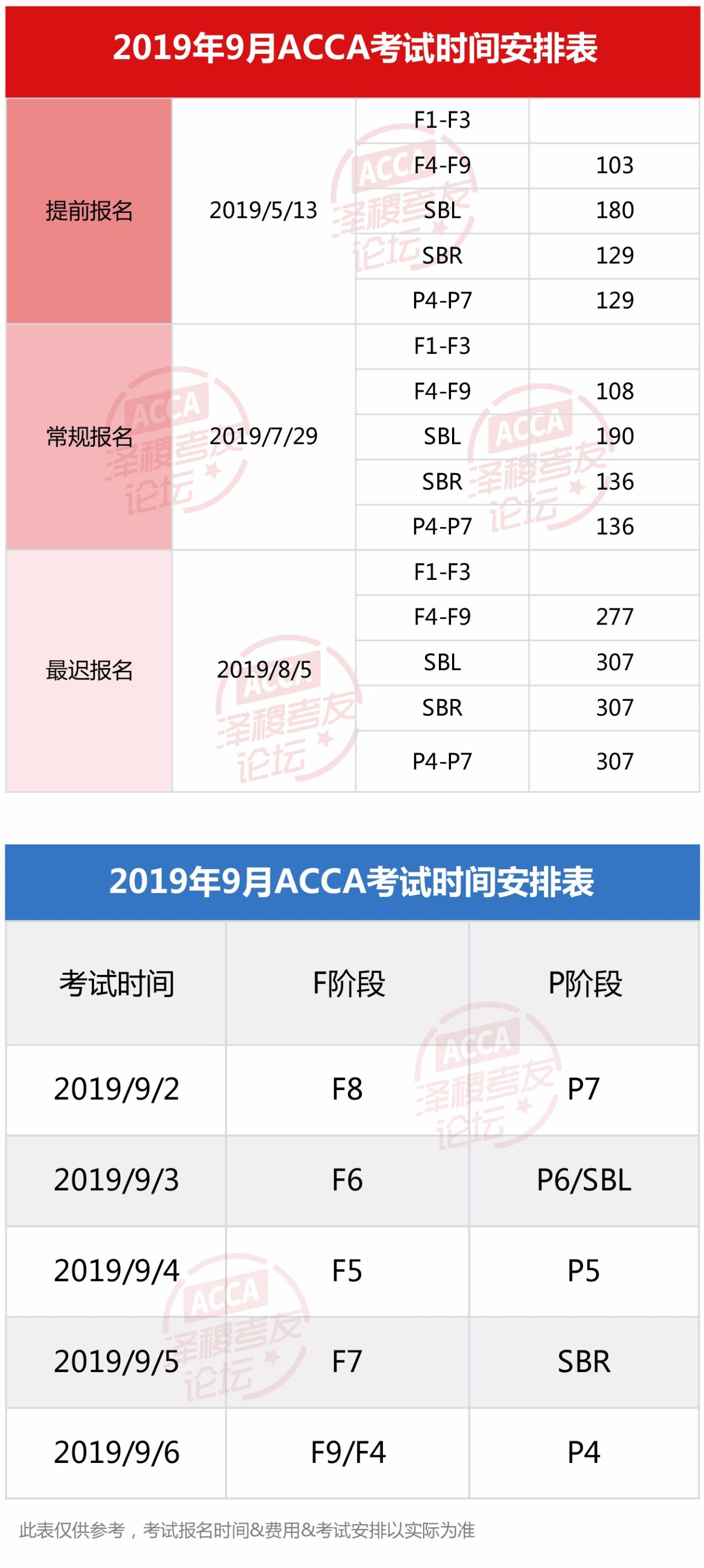 ACCA 9月提前报名早已开始,不过在报名之前大家都关心整个9月考季的考试安排,这里泽稷小编给大家整理了份2019/9月ACCA报考时间&考试费用&考试时间安排表,需要的可以收藏下。