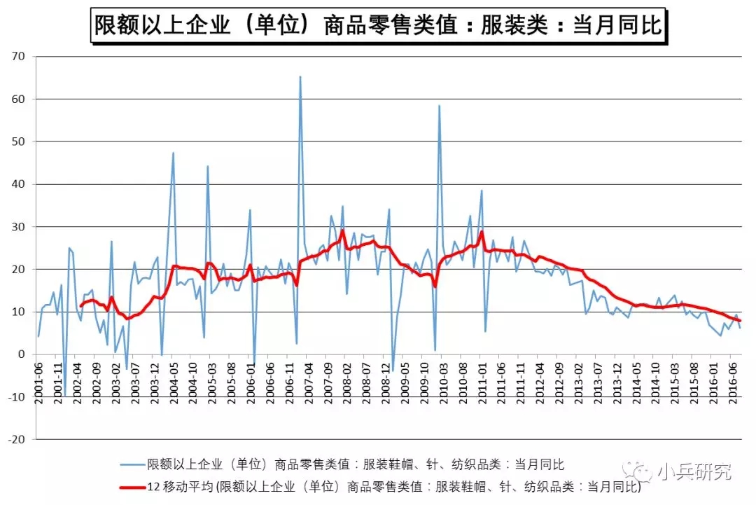 图:国内限额以上企业服装类零售额同比增速图