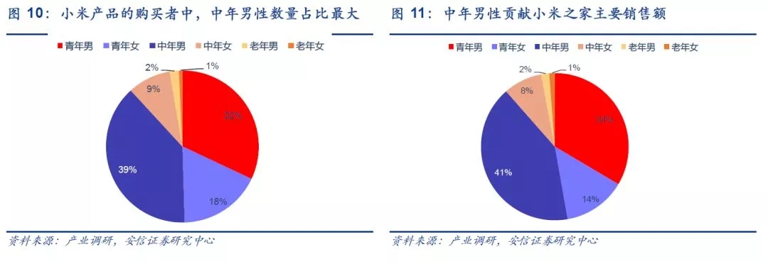 通过高性价比的产品、针对性的市场营销,小米成功地圈住了中年男这一目标人群。而作为中年男的“预备队”,青年男也已是小米之家的第二大客群,小米“后继有人”。