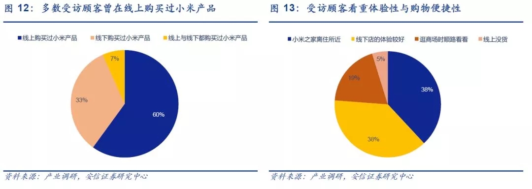 我们访谈了小米之家的20名顾客,发现他们购买目的性较强,更加重视现场体验、购物的便捷性。这20名顾客中,大部分曾在线上买过小米的产品。他们专程来到小米之家,主要是因为看中线下体验。当然,“离家近”也很重要。一位中年男提到:“线上购买是方便,但是没办法体验产品,始终不放心,我家离得也不远,顺路就来看看了”。