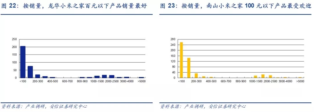 小米顾客的客单价与收入水平相关。统计客单价,龙华小米之家为598元,而南山小米之家为668元。我们认为,南山小米之家的客单价高,主要因为南山居民的收入水平更高。