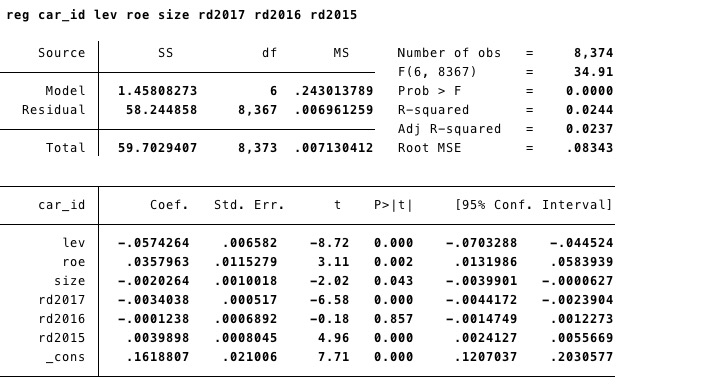 stata回归结果分析