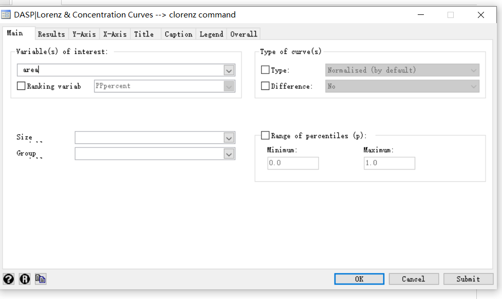 stata中的DASP插件做人口分布的洛伦兹曲线怎么设置横轴纵轴都为百分比