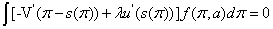 -[v'(π-s(π))s'(π)]f(π,a)/s(π)+λ[u'(s(π))s'(π)]f(π,a)/s(π)+C=0