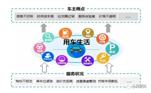 汽车生活的全生命周期中存在多个场景,车主用车服务市场表现出诸多问题,车主面临信息不对成、时间成本高、服务体验差等痛点,作为产业链上的弱势群体,需要平台来对行业进行整合。
