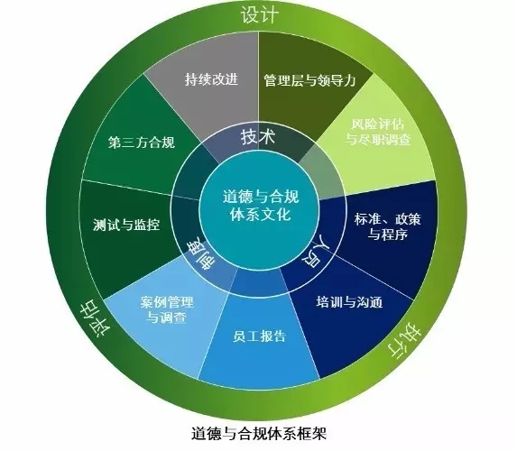 技术:先进的技术工具有利于促进合规管理体系的设计、运营;完善的技术平台能有效整合各类风险,并帮助企业预防、监测道德合规风险,实现事后快速响应;
