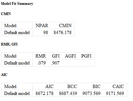 论文AMOS求助!Model Fit板块指标没有DF、P、AGFI等值。