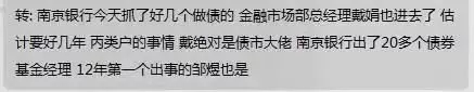 19日晚市场传称,南京银行资管部总经理戴娟失联。