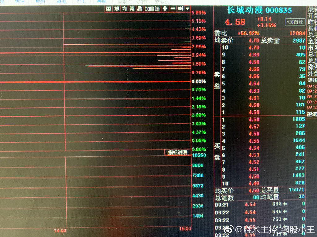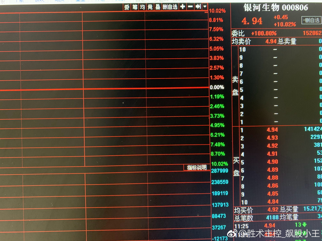 今天开盘了,总体感觉和昨天规划的差不多,大盘基本往下,板块呈现的是缺少主流的行情,只有汽车类那么一两只,接着往下,到了9:25,盘面上10个涨停的行情,让我觉得今天或许会很累。打开分时图。看到了银河生物,微微上扬的竞价图,科学合理的盘口数据,觉得就是自己想要找的股票,来到长城动漫,买卖队列处的巨大买单,预示着强烈的做多意识,随后果然涨停了。到了9:30华正新材,隆利科技漂亮的分时出击,那就是涨停的前兆,随后两个票全部涨停了,看着这些涨停的股票,心里由衷的满意,特别是集合竞价的时候,选到了两个涨停板,基本完成预先设定的目标,同时在开盘后,两个票的涨停,更给了自己莫大的信心。