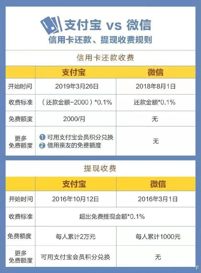 那么,微信和支付宝还信用卡各自收费的标准是多少呢?见下图: