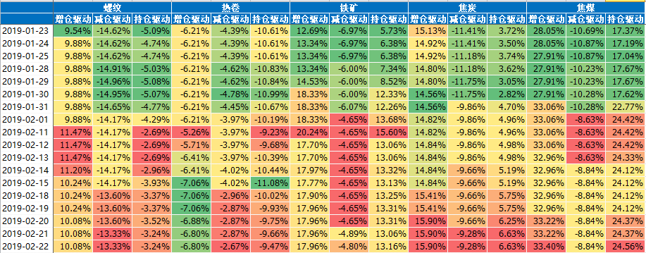 铁矿的减仓驱动向上,增仓驱动平稳;