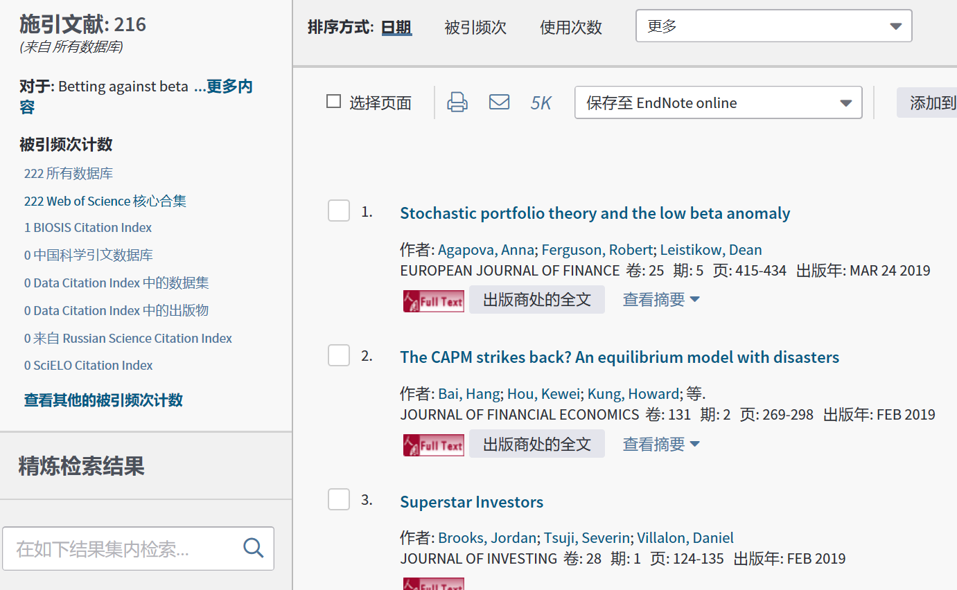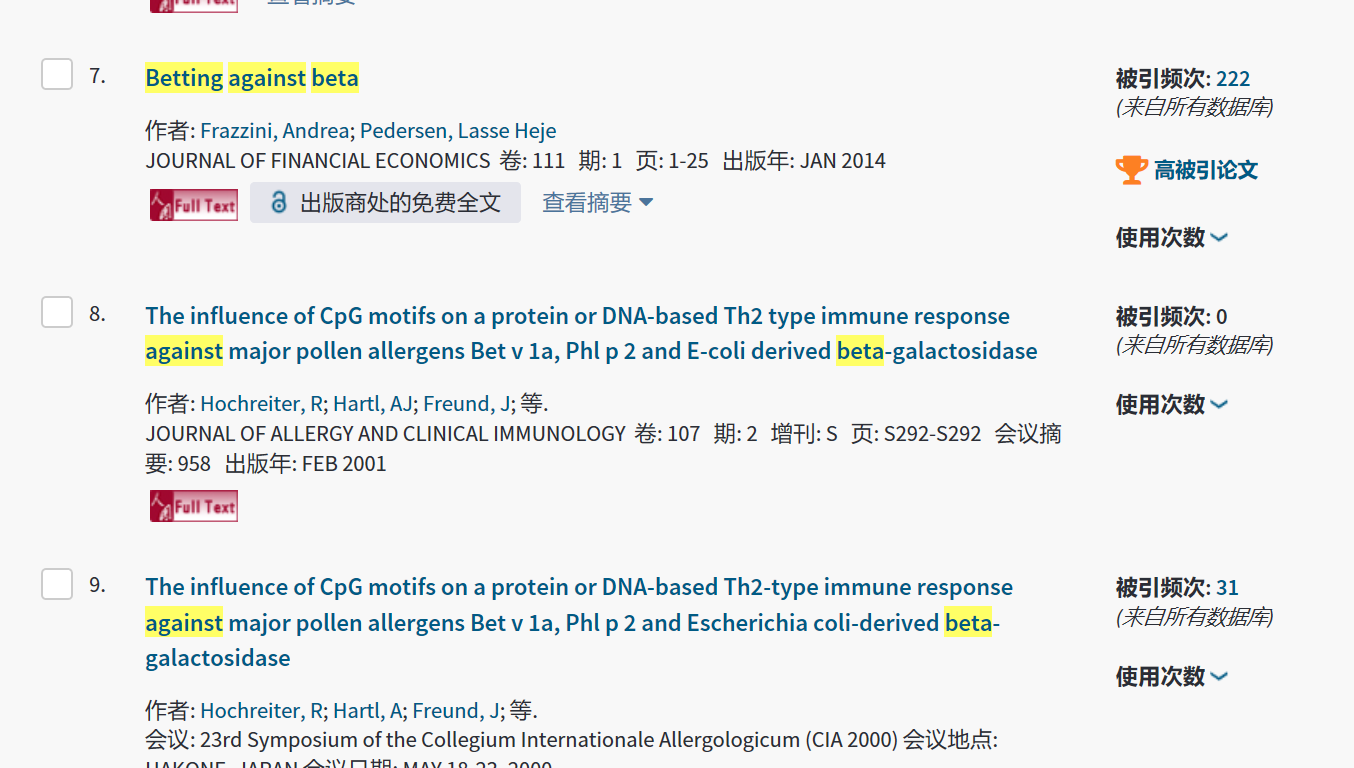 2. 文章旁边的“被引频次”中显示的次数即为该文在web of science收录的数据库中一共被引的次数,其中包括自引与他引,也包括除SCI/SSCI之外的引用情况,因此还需从中进行筛选