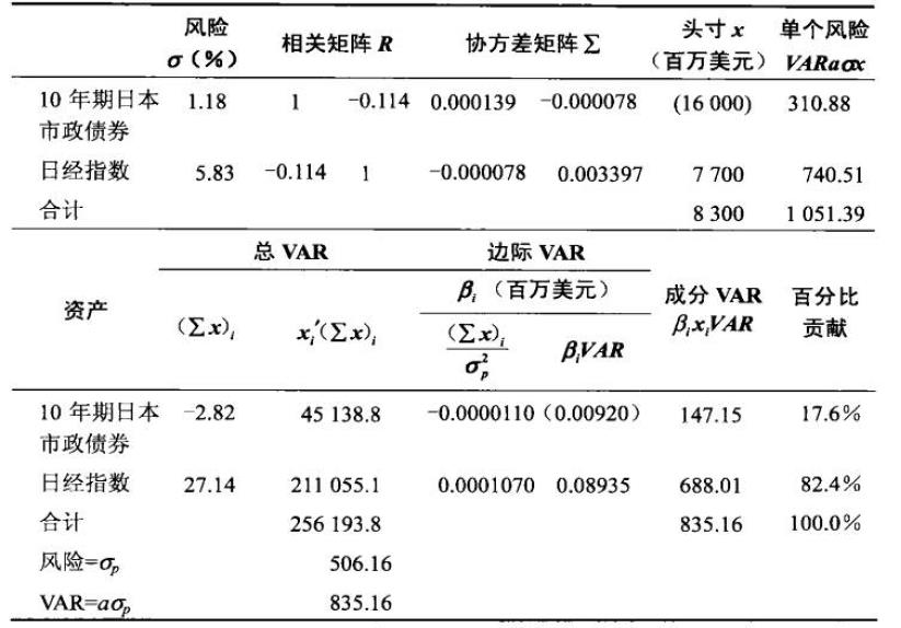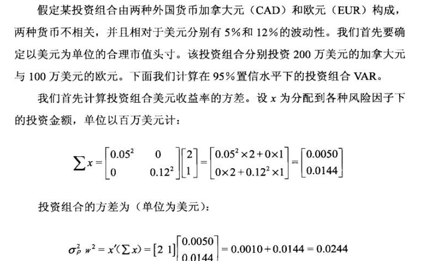其中一章讲了投资组合分析的方法,介绍了各种VAR,比如individual VAR,CVAR等,但例子没看明白